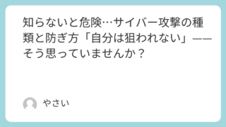 サイバー犯罪 知らないと危険…サイバー攻撃の種類と防ぎ方「自分は狙われない」——そう思っていませんか? この記事では、知っておくべき主要なサイバー攻撃の種類をわかりやすく解説し、今日からすぐに実践できる具体的な防衛策をご紹介します。 2026.04.01 サイバー犯罪