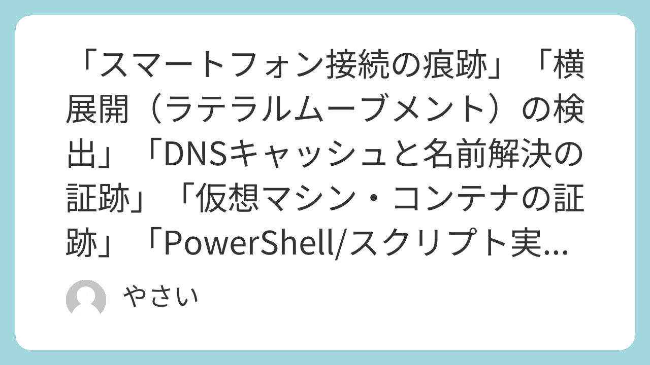 「スマートフォン接続の痕跡」「横展開(ラテラルムーブメント)の検出」「DNSキャッシュと名前解決の証跡」「仮想マシン・コンテナの証跡」「PowerShell/スクリプト実行の深層分析」の5本柱の徹底解説 対応OS:Windows / macOS / Linux