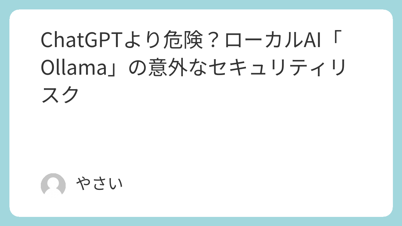 Ollamaはローカルで動作するという特性から「プライバシーが守られる安全なツール」として広く認識されています。その認識は間違っていませんが、「ローカル」であることと「セキュア」であることはイコールではありません。