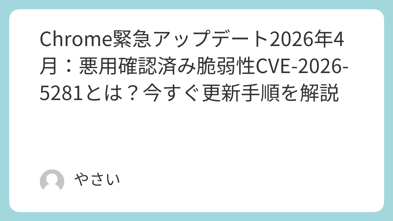 今あなたが使っているChromeブラウザ、実は「悪用が確認済みの穴」が開いたままかもしれません。2026年3月31日、Googleはデスクトップ・Android版Chromeに深刻度「高」を含む20件超の脆弱性修正を緊急公開。しかも1件はすでに攻撃者に悪用されています。本記事では専門家10名の視点から、リスクの実態と各デバイスの更新手順をわかりやすく解説します。