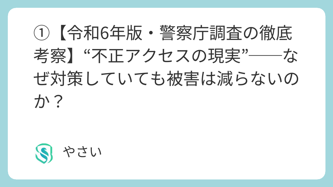①【令和6年版・警察庁調査の徹底考察】“不正アクセスの現実”──なぜ対策していても被害は減らないのか?