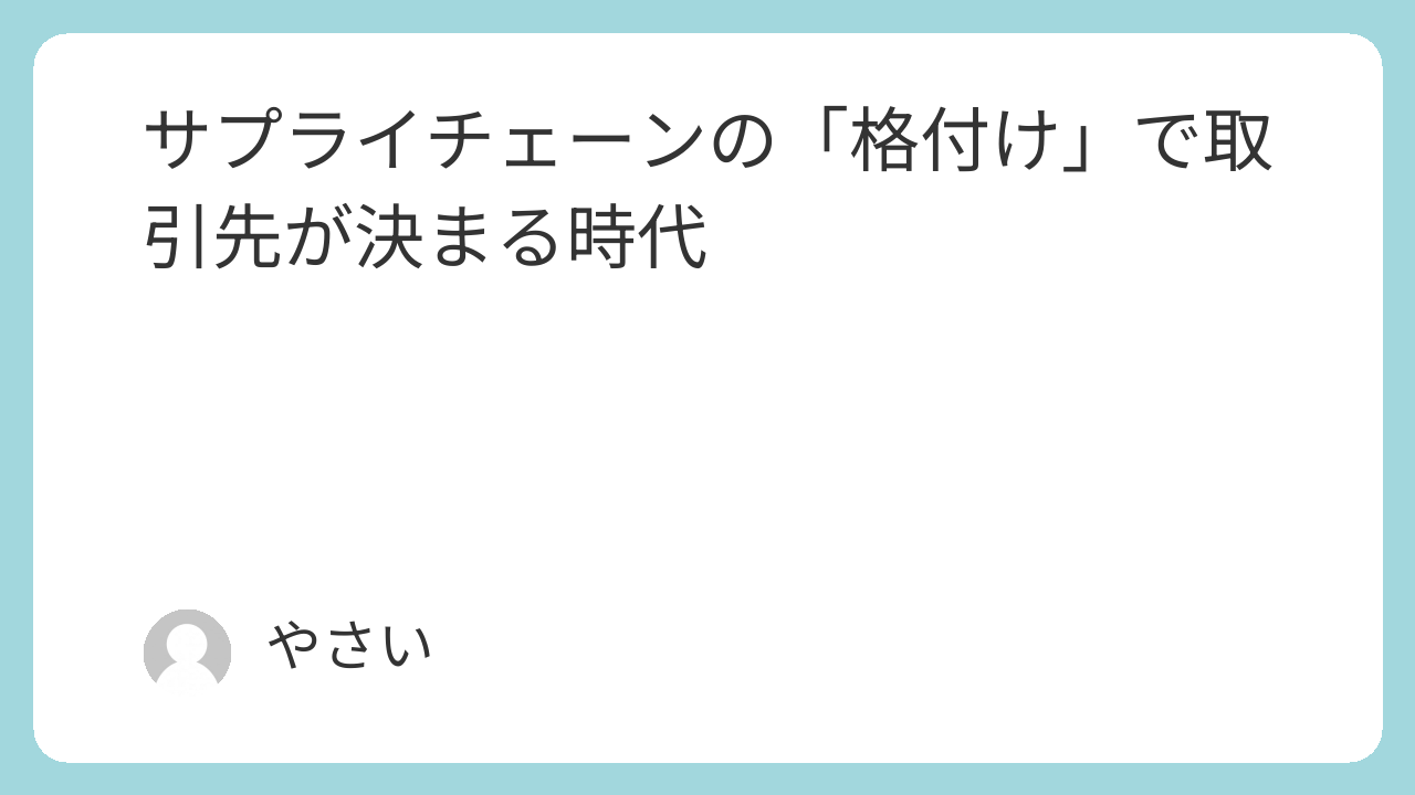 もう少し踏み込んで考えると、格付けを取得した企業は「信頼できるサプライチェーンの一員」 として、長期的な取引関係においても優位性を持つ。一度格付けが定着すれば、 それを持つ企業と持たない企業の間に「選ばれる企業・選ばれない企業」という 二極化が進んでいくだろう。
