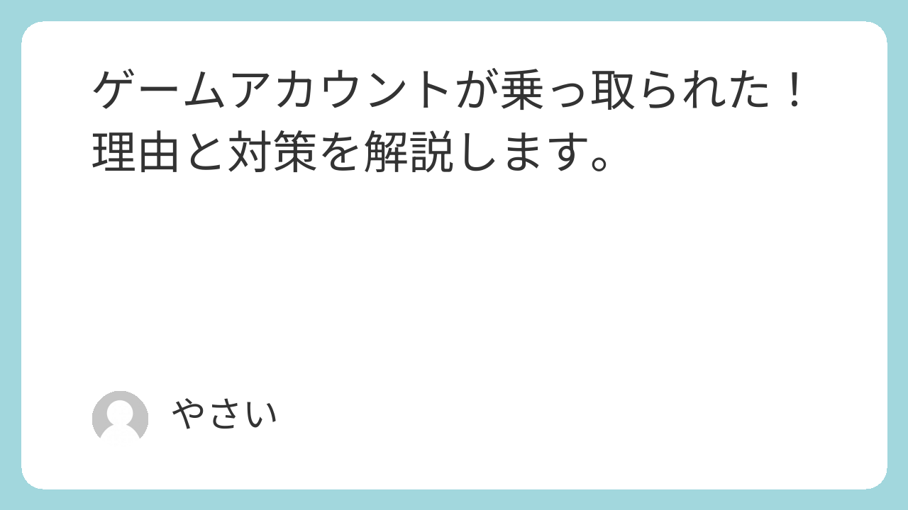 「気づいたらゲームのアカウントが使えなくなっていた」「見覚えのないログインがある」――そんな経験をしたことはありませんか?