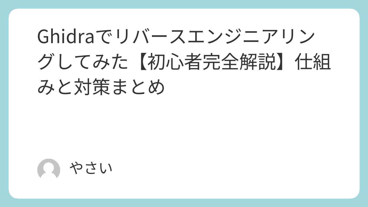 - 「マスタリングGhidra ―基礎から学ぶリバースエンジニアリング完全マニュアル」 — より深く学びたい人向けの網羅的な解説書。