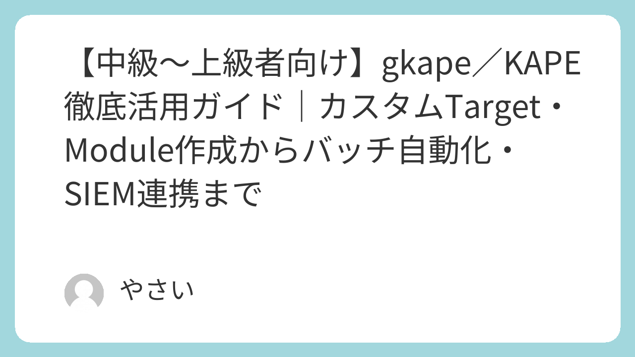 KAPEの基本操作をひと通り習得した方へ向けて、本記事では カスタムTarget・Moduleの作成、フラグの詳細制御、複数端末への一括展開、Timeline Explorerを超えた可視化手法、SIEM・SplunkへのCSV取り込みパイプライン まで、実務で差がつくテクニックを体系的に解説します。