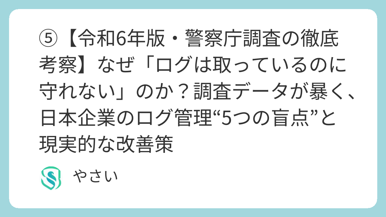⑤【令和6年版・警察庁調査の徹底考察】なぜ「ログは取っているのに守れない」のか?調査データが暴く、日本企業のログ管理“5つの盲点”と現実的な改善策