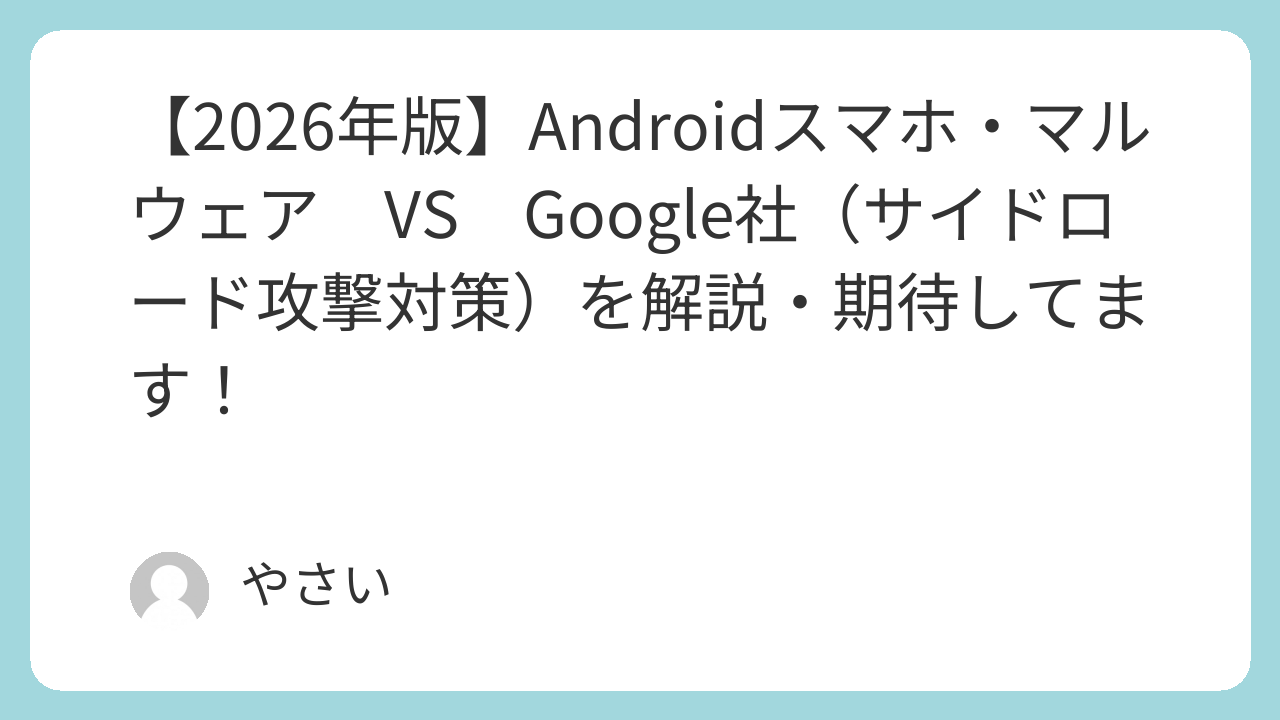 【2026年版】Androidスマホ・マルウェア VS Google社(サイドローディング攻撃対策)を解説・期待してます!
