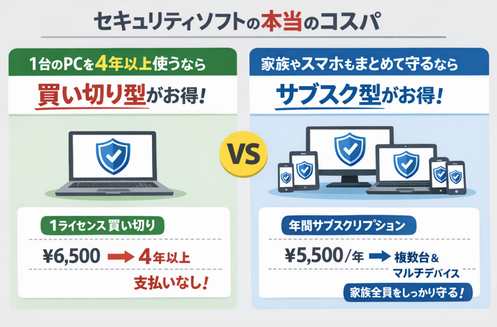 買い切り型 vs サブスク型のセキュリティソフトの「本当のコスパ」