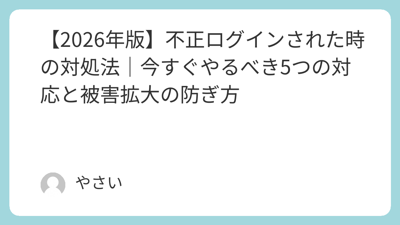 ⚠️ 緊急 「あれ…自分じゃないログインがある」「見覚えのないメールが届いた」——そのままにしてはいけません。不正ログインは発見した最初の数分間の行動が被害の大きさを左右します。